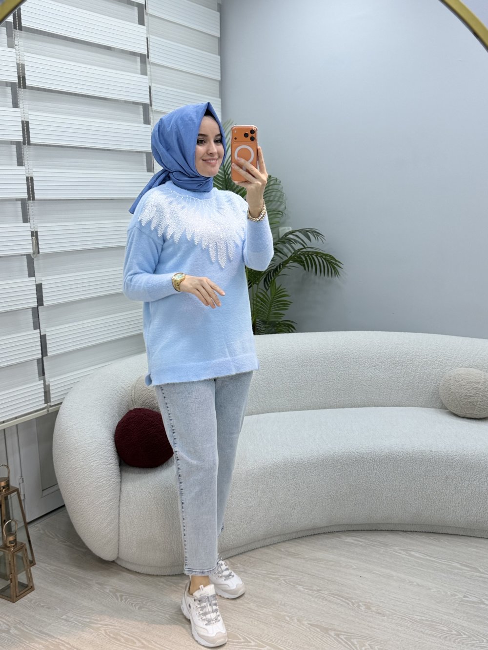 Boncuk Detaylı Yumoş Tunik Bebe Mavisi