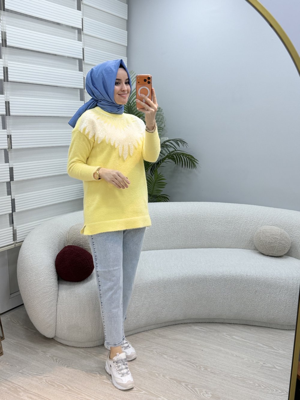 Boncuk Detaylı Yumoş Tunik Sarı