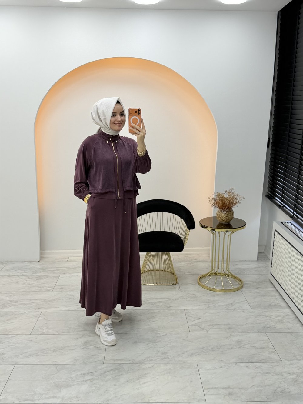 Duru Qupra Etekli Takım Mürdüm