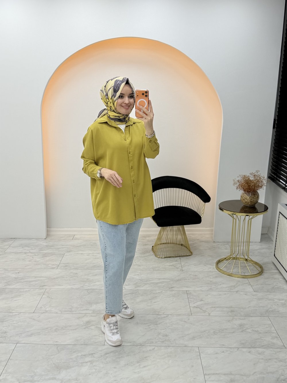 Düz Tensel Gömlek Sarı