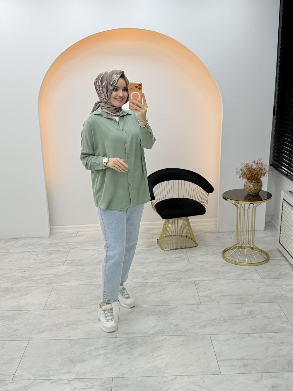 Düz Tensel Gömlek Yeşil