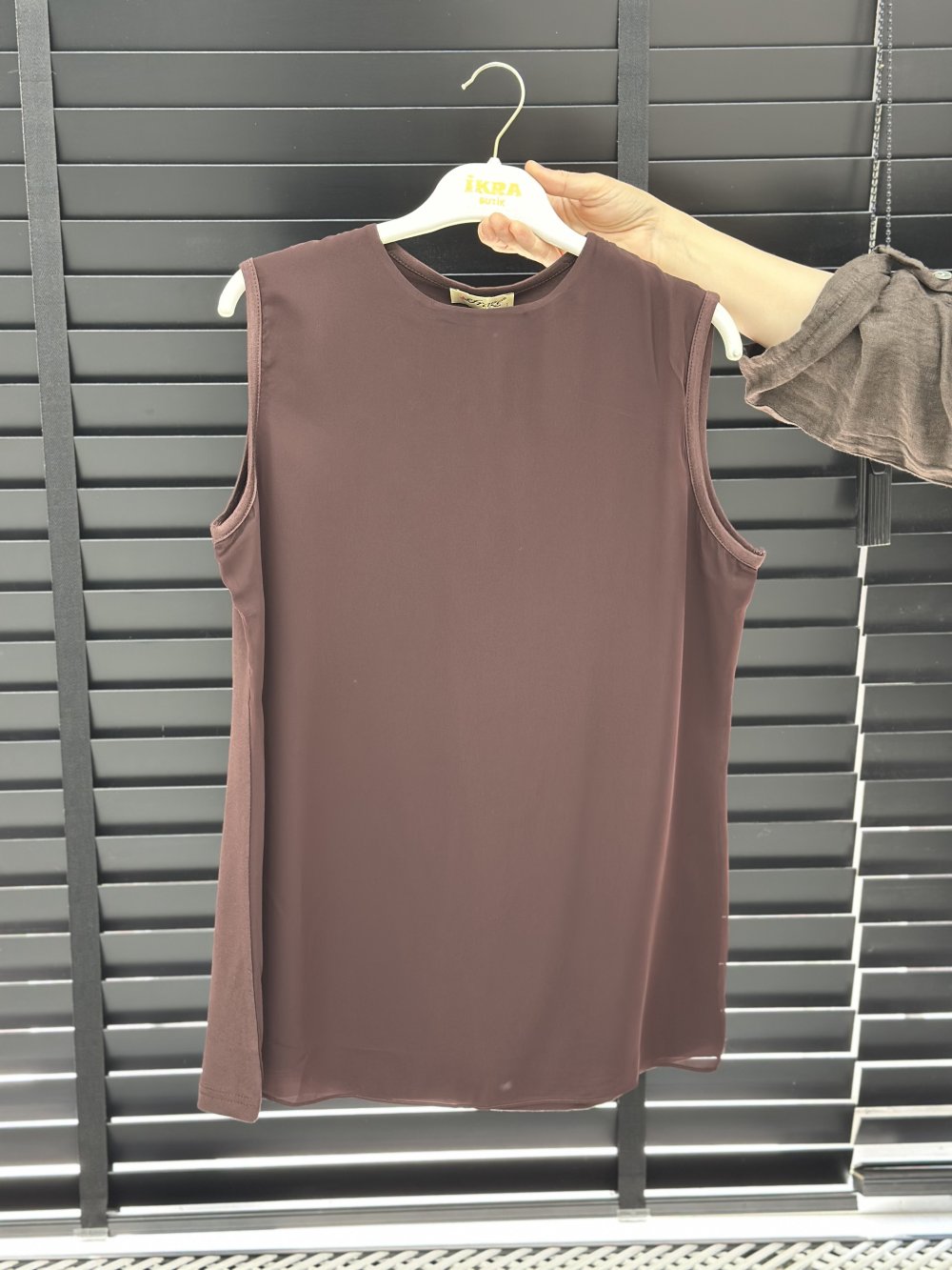Efraze Önü Şifon Detaylı Tunik Kahverengi