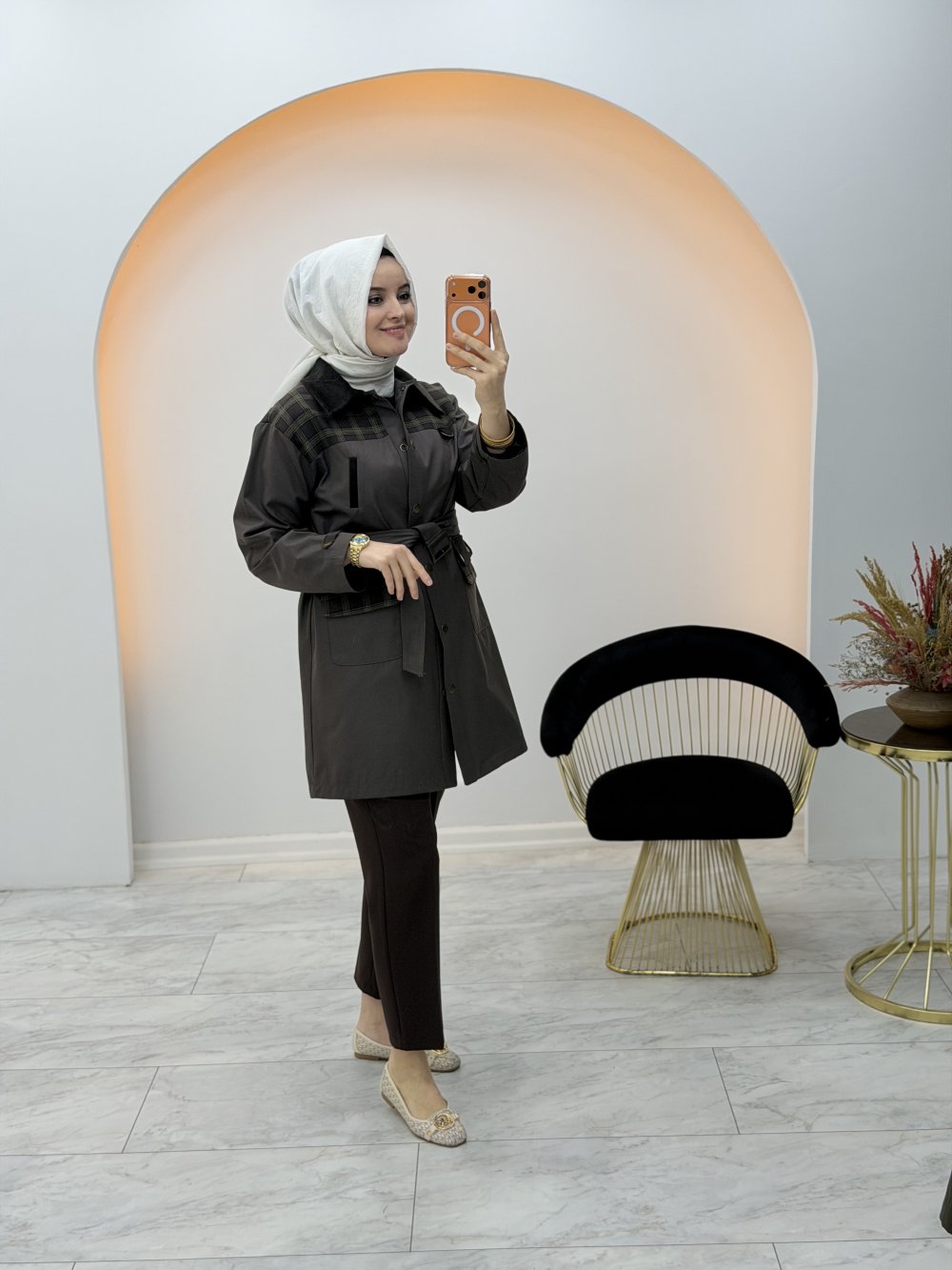 Ekose Detaylı Kap Kahverengi