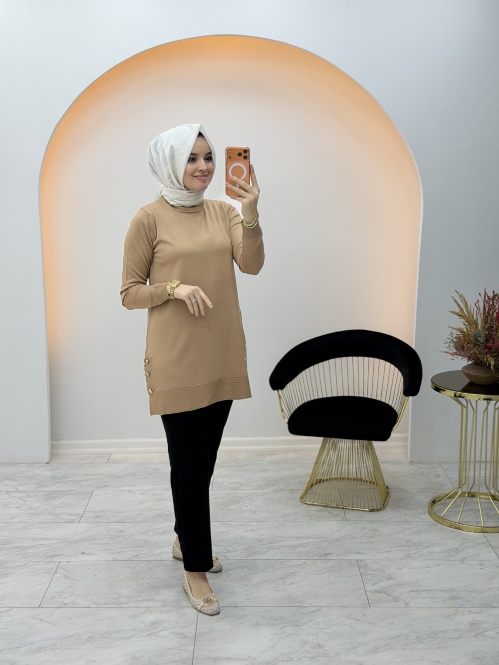 Ela Düğme Detay Tunik Sütlü Kahve
