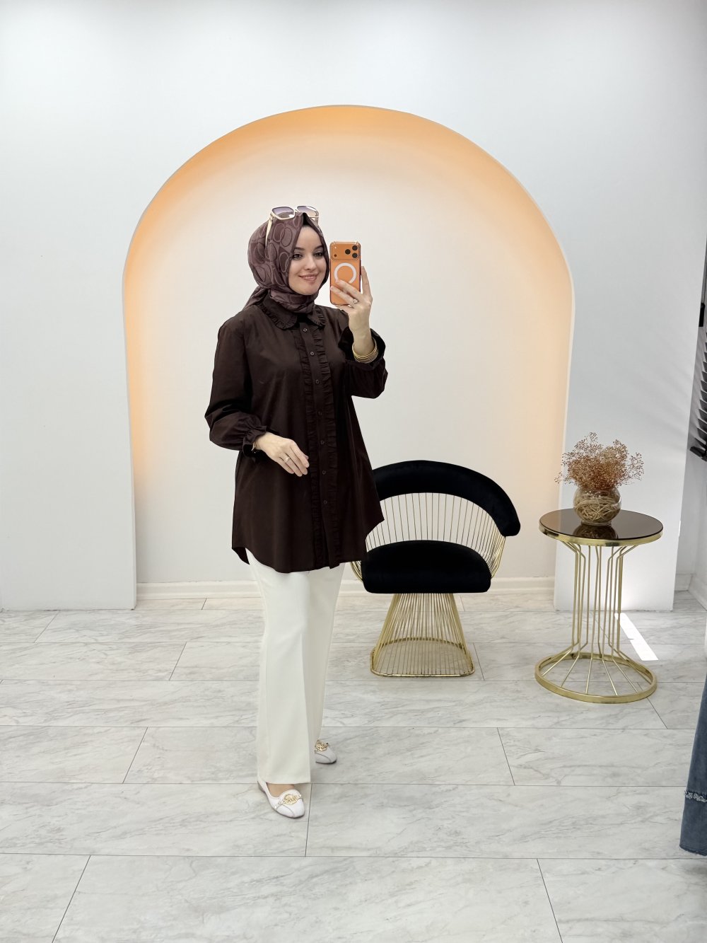 Fırfırlı Gömlek Kahverengi