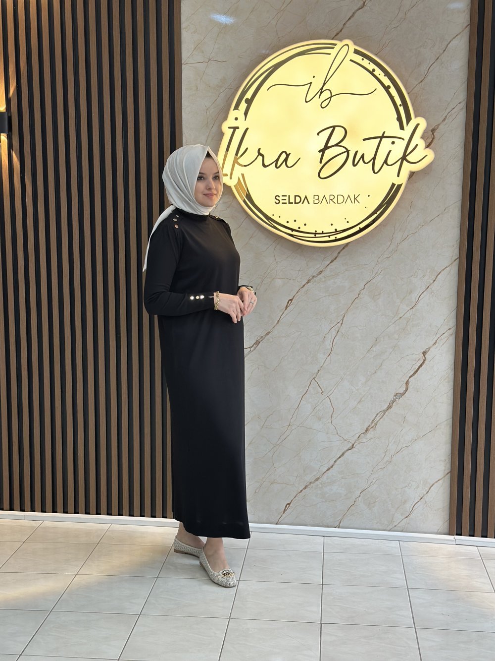 Gold Düğmeli Merserize Elbise Siyah