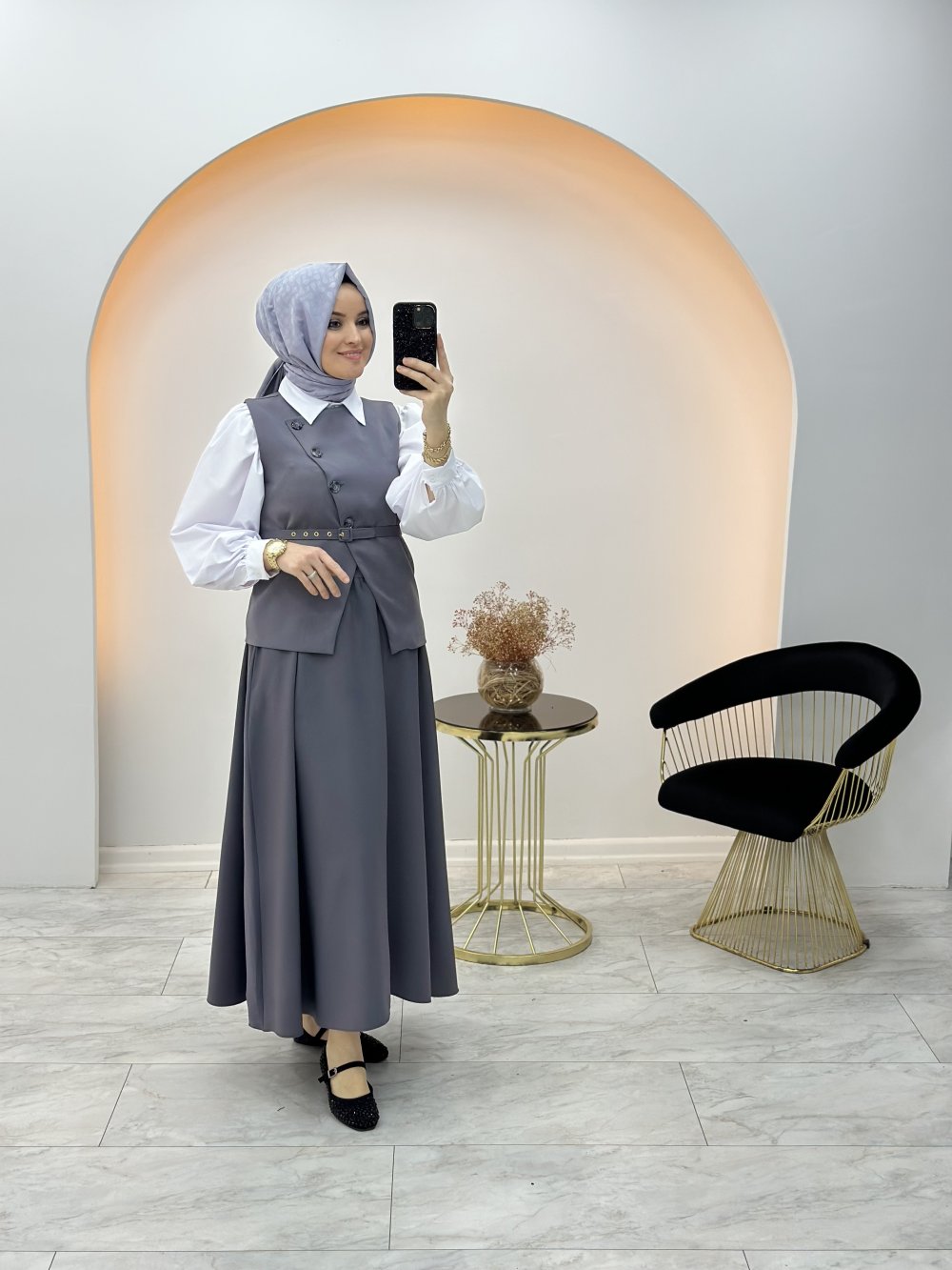 İkili Yelekli Takım Gri