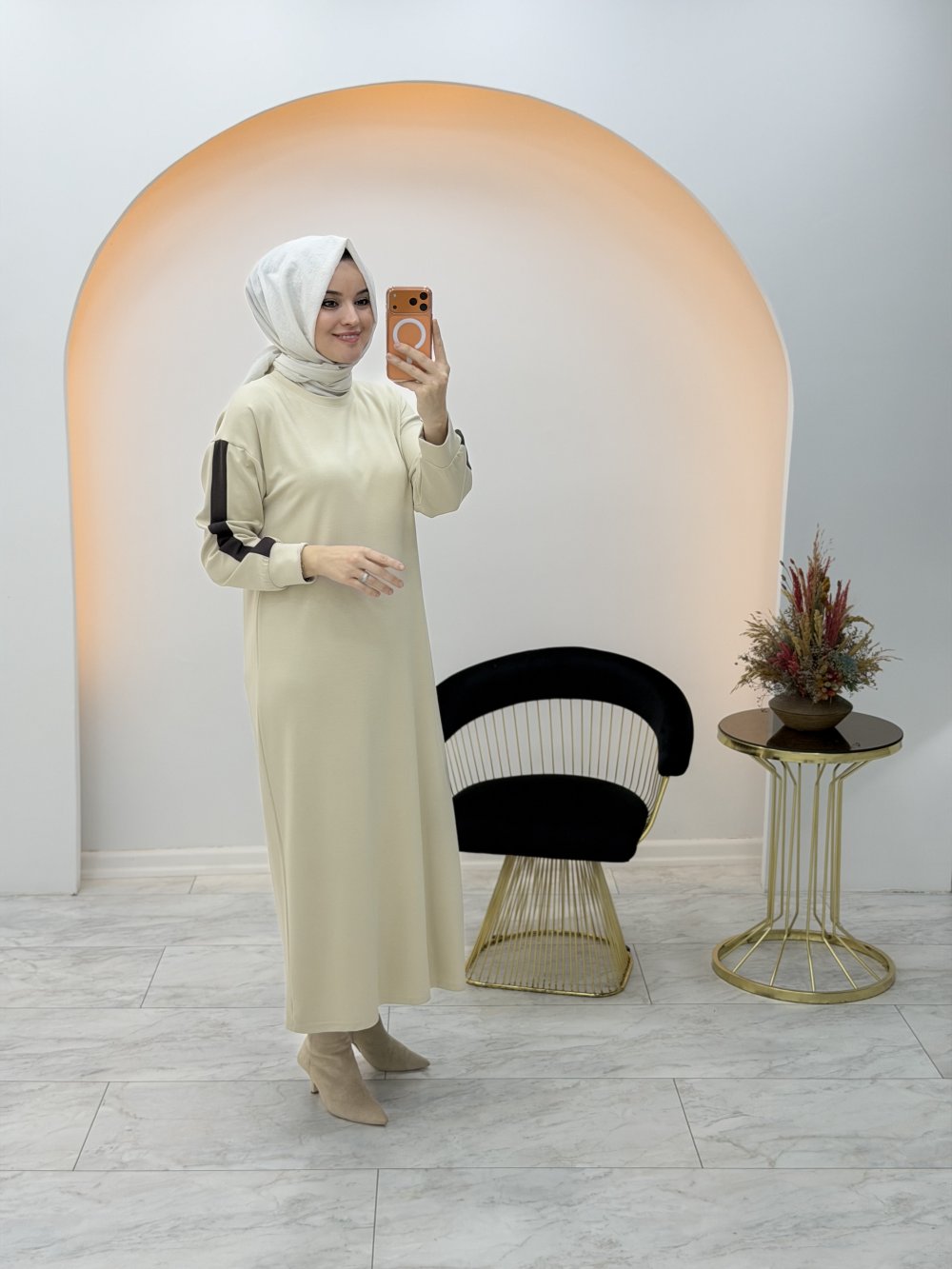 Kampanyalı Spor Şerit Elbise Bej