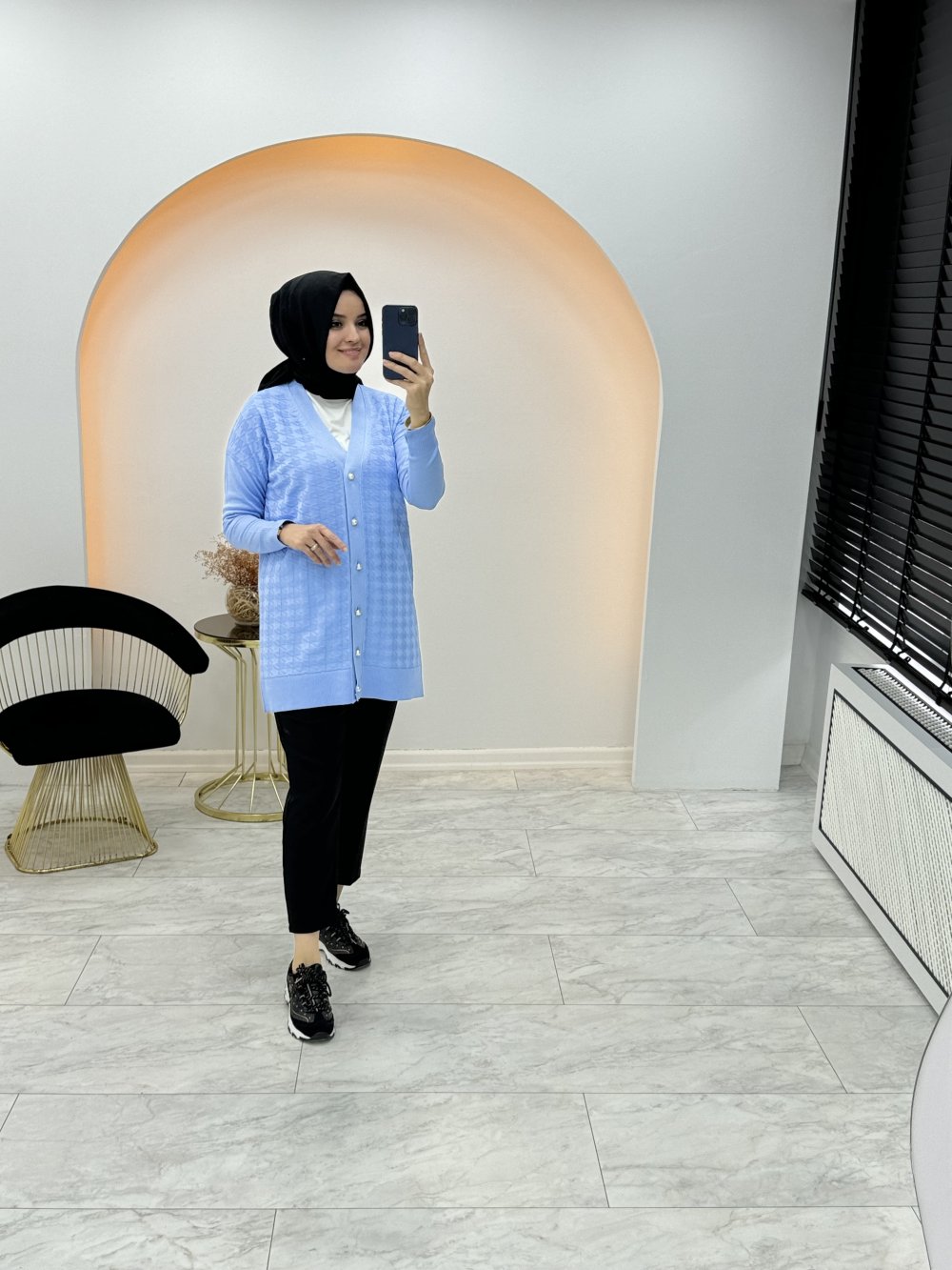 Kaz Ayağı Desen Hırka Bebe Mavisi