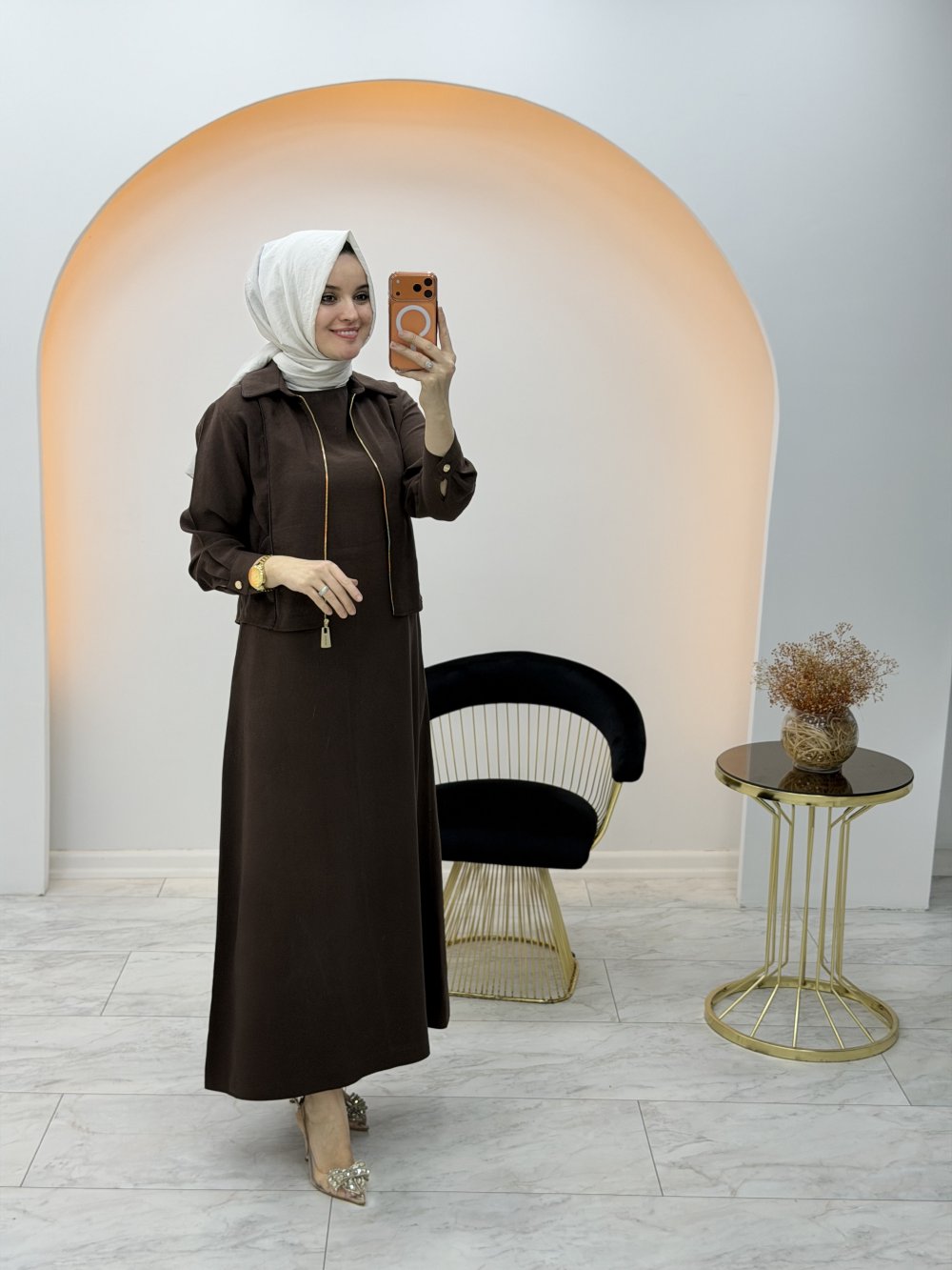 Lina Ceketli Elbise Kahverengi