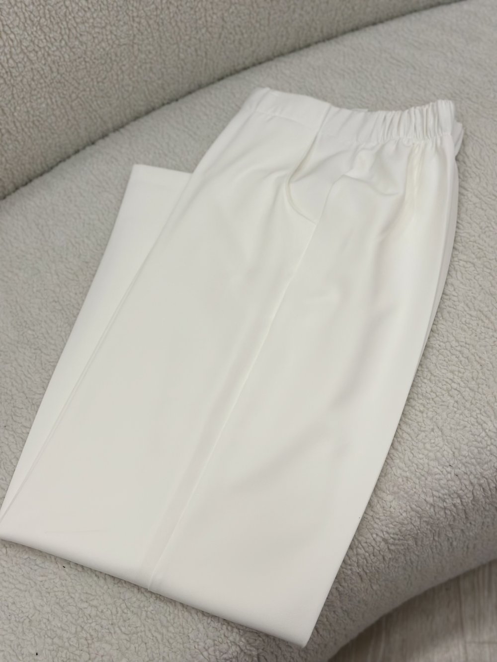 Modiva Kumaş Bol Paça Pantolon Beyaz