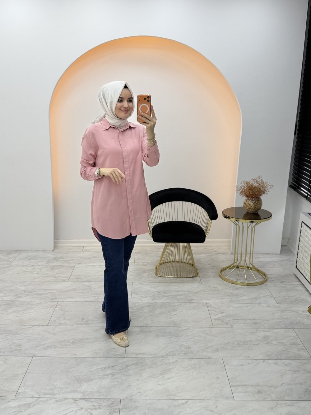 Nakışlı Tensel Gömlek Pembe