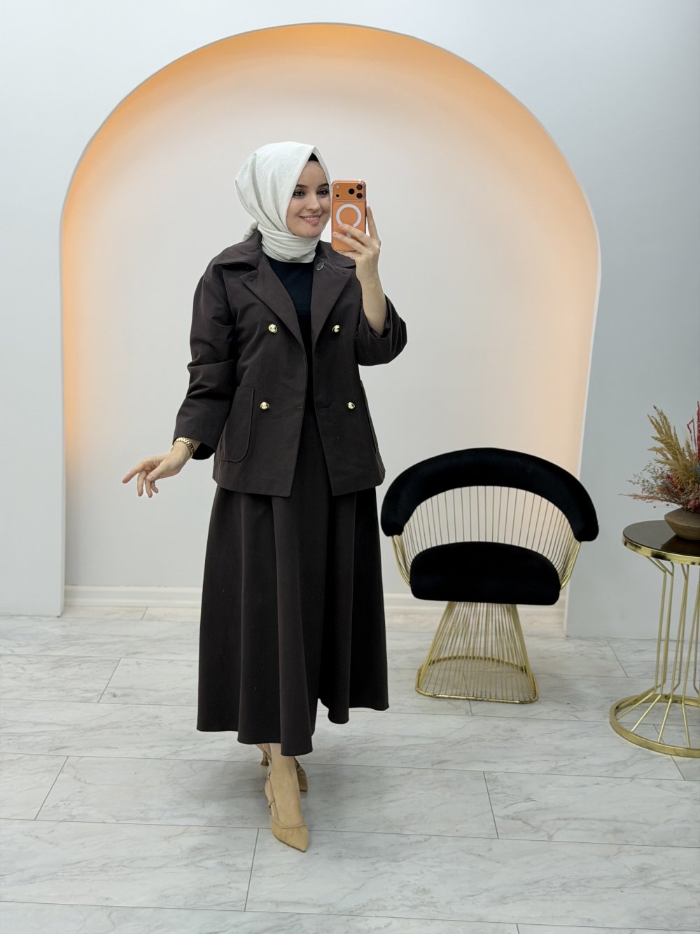 Özgü Etekli Takım Kahverengi