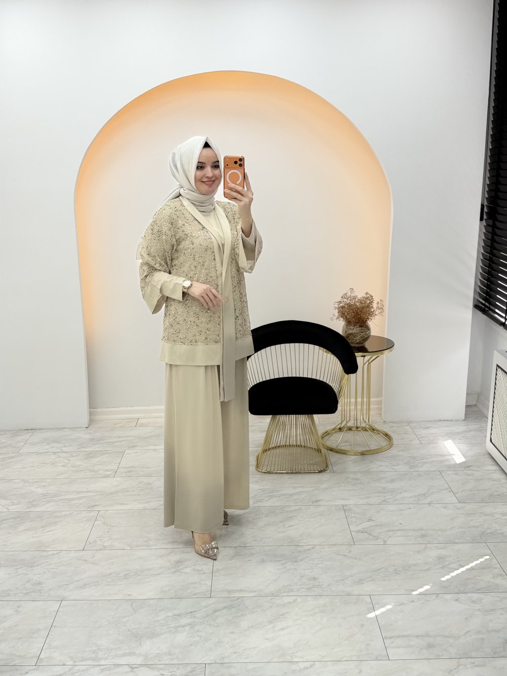 Pul Detaylı Üçlü Takım Krem