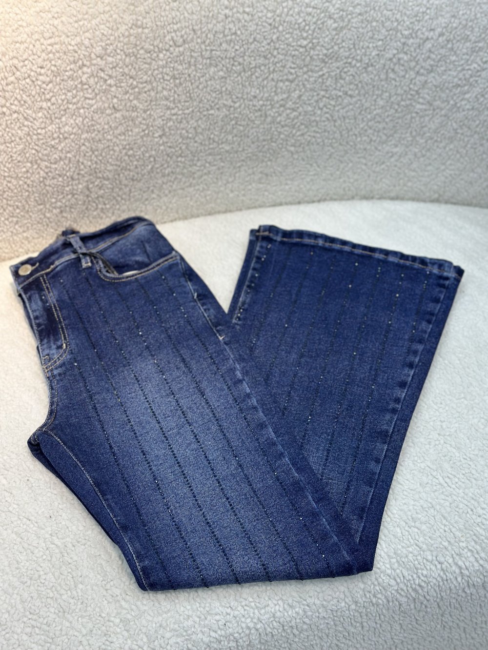 Taşlı İspanyol Kot Pantolon Lacivert