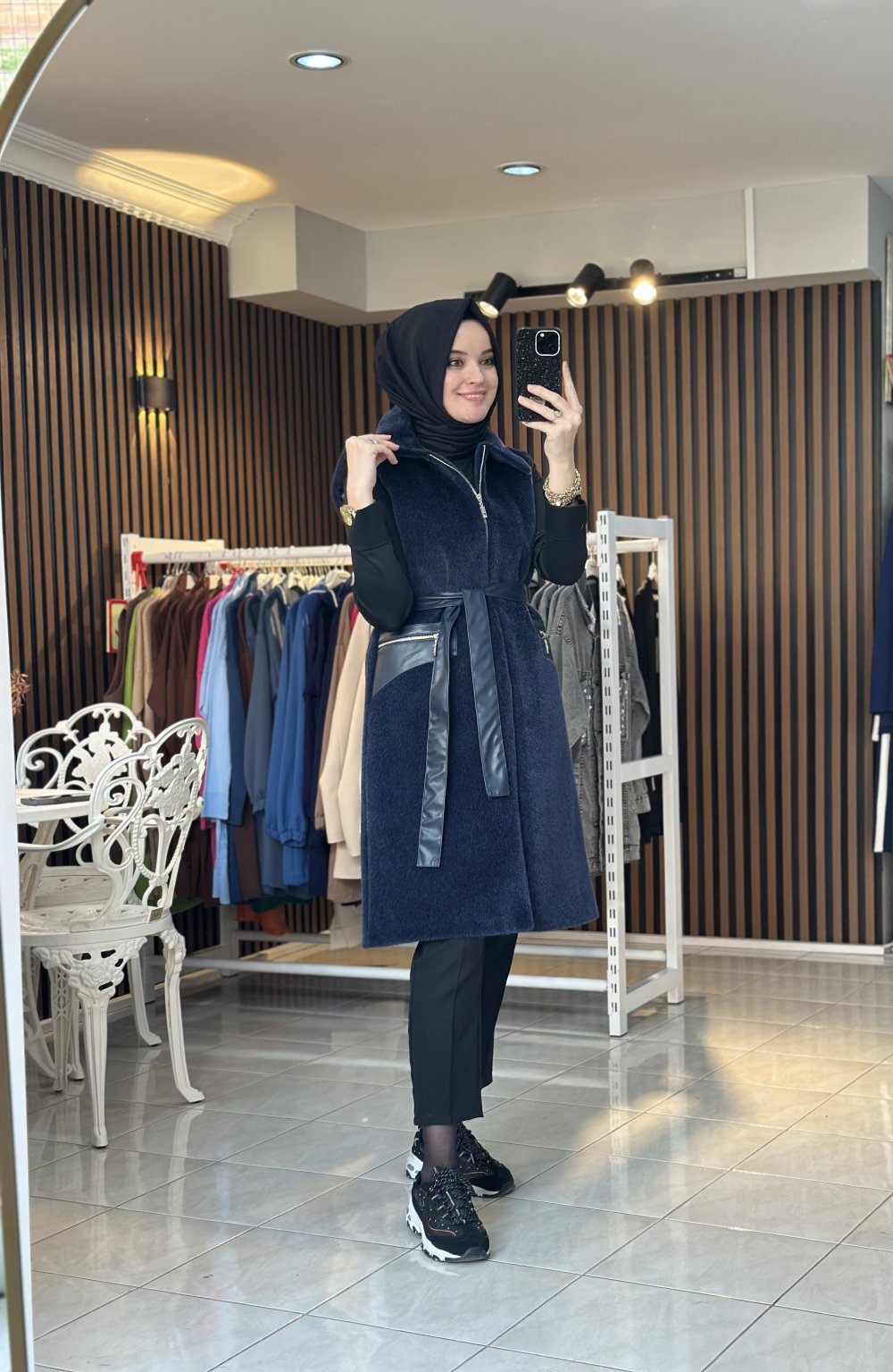 Uzun Tay Tüyü Angora Yelek Lacivert