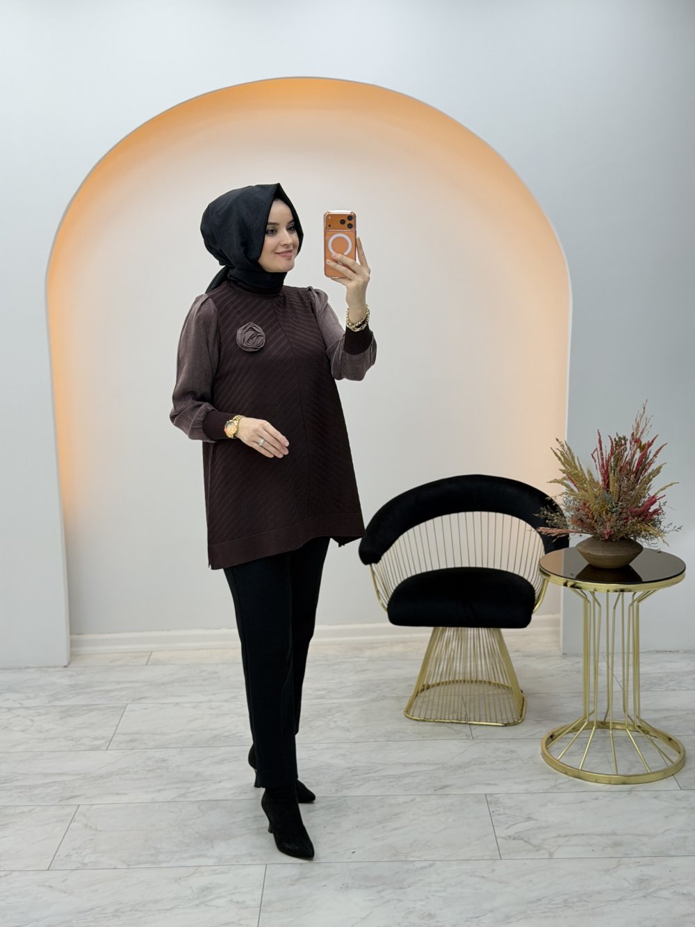 Viva Güllü Tunik Kahverengi